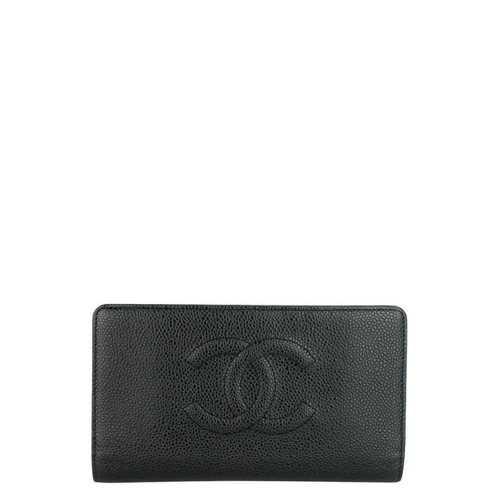 An embossed double-C monogram lends signature branding to an otherwise low-profile caviar leather wallet packed with plenty of slots and a zippered pocket for coins.