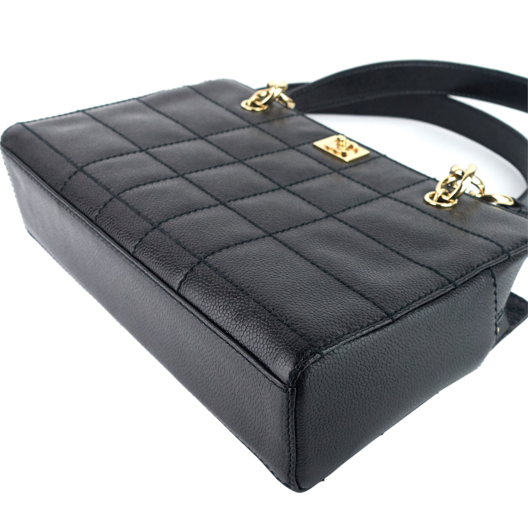 This structured bag bag made from quilted caviar leather features flat leather straps for easy shoulder carry and a trio of compartments to keep you well-organized.
