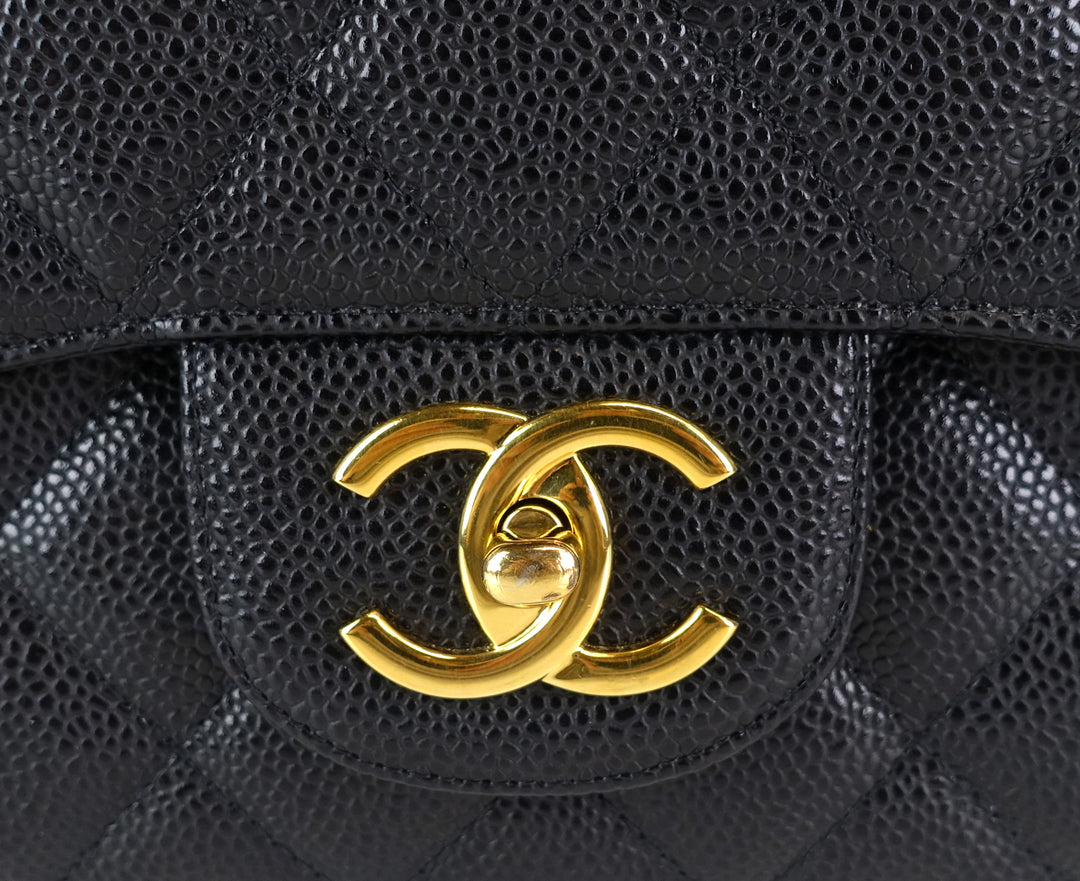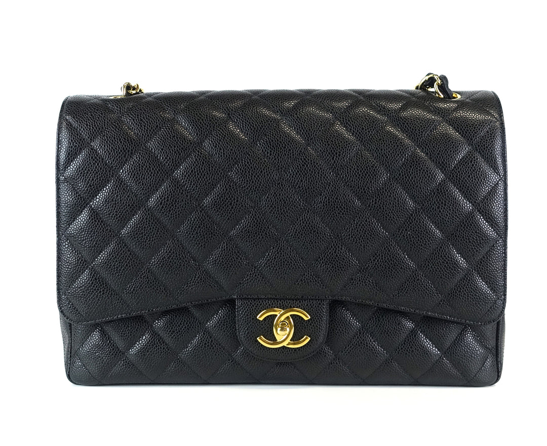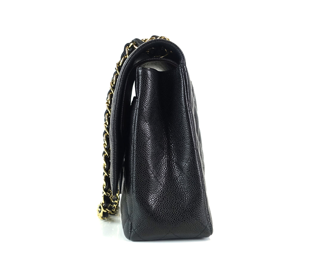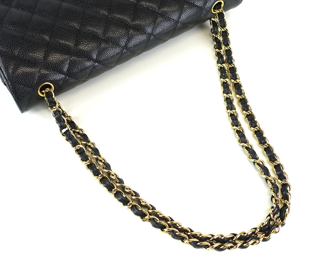 double flap caviar leather maxi bag