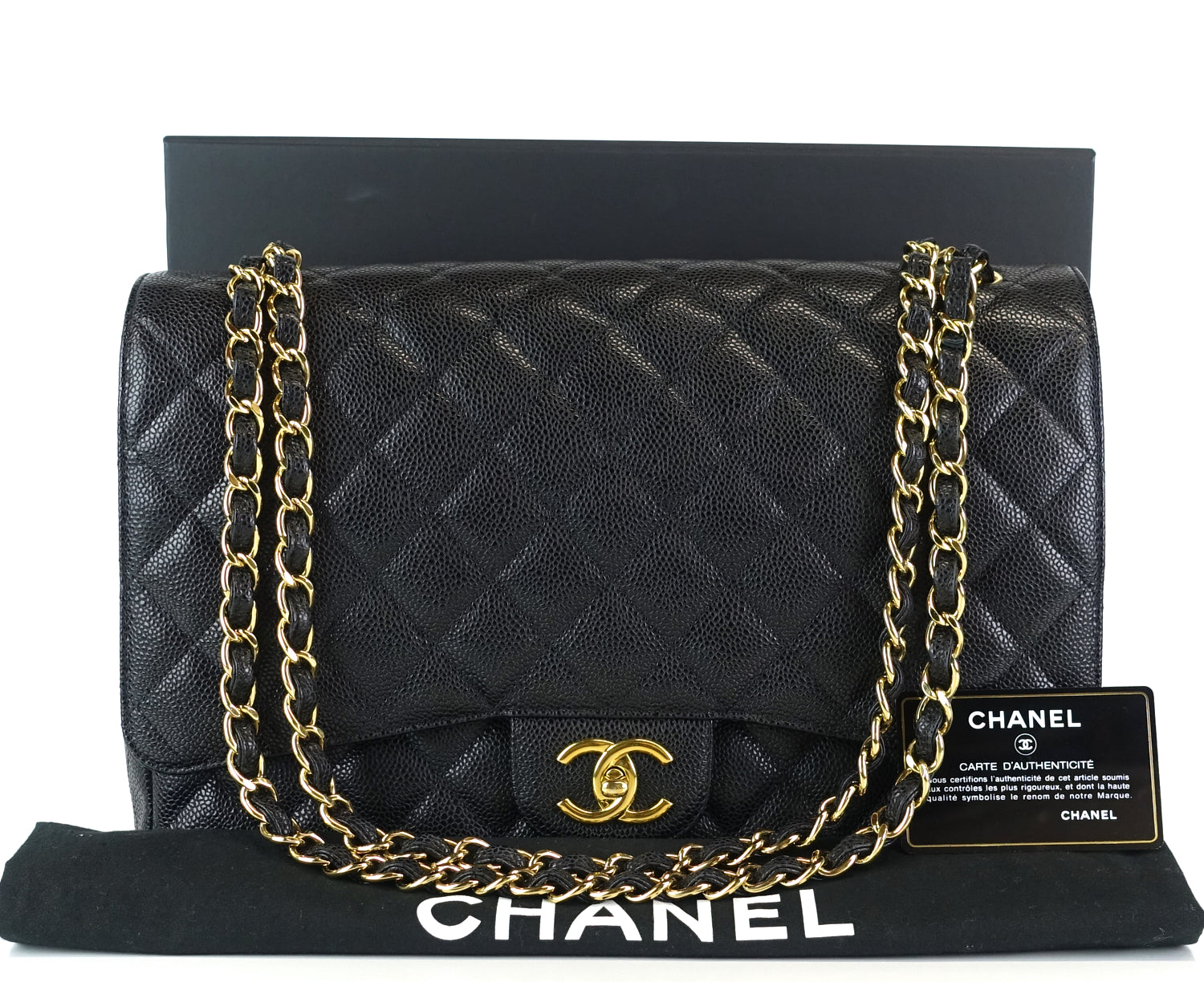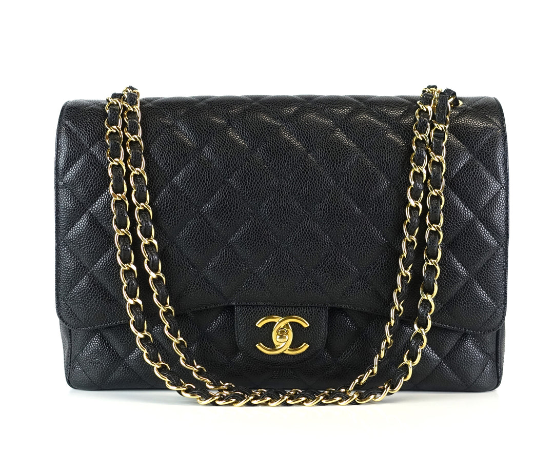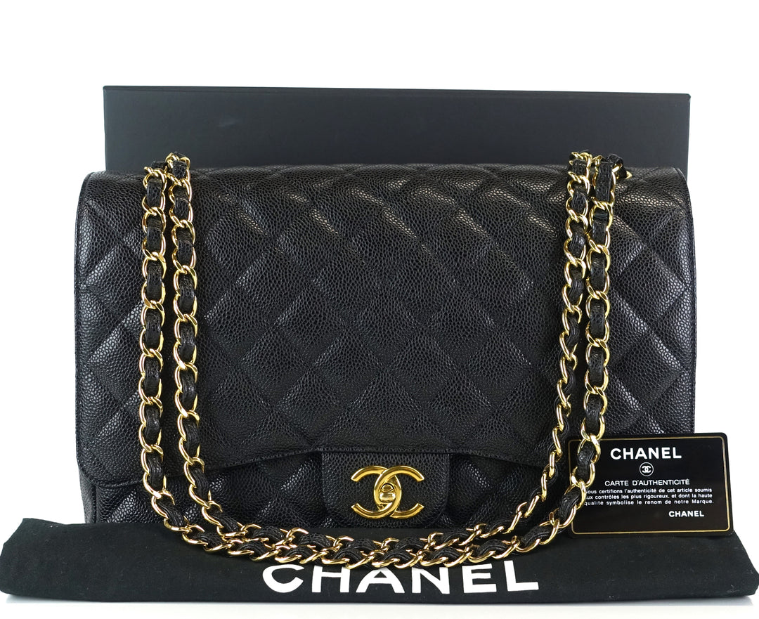 double flap caviar leather maxi bag