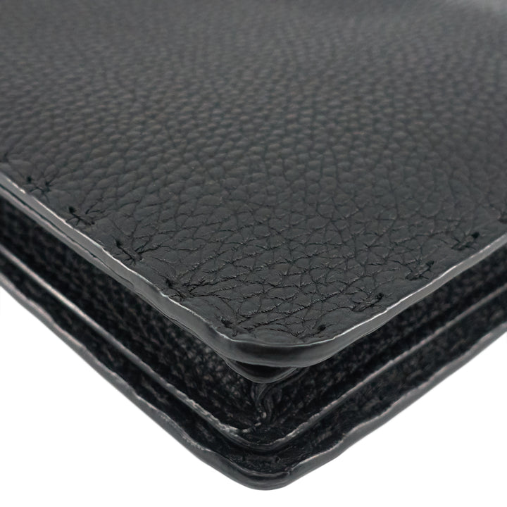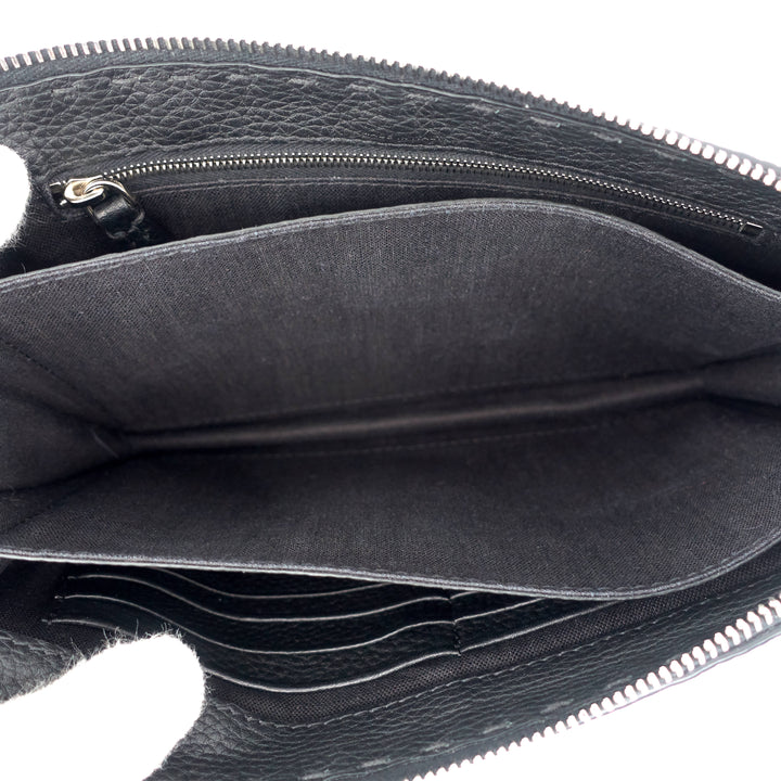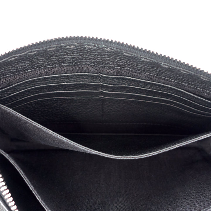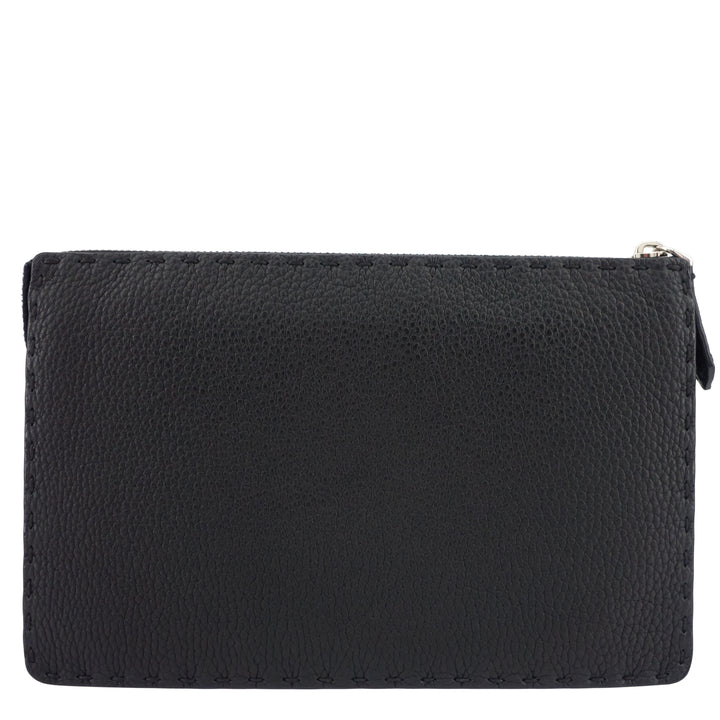 Spooky eyes lend a cool monstrous vibe to this slim clutch bag, which has a cleverly divided interior and is crafted from Saffiano embossed grained leather.