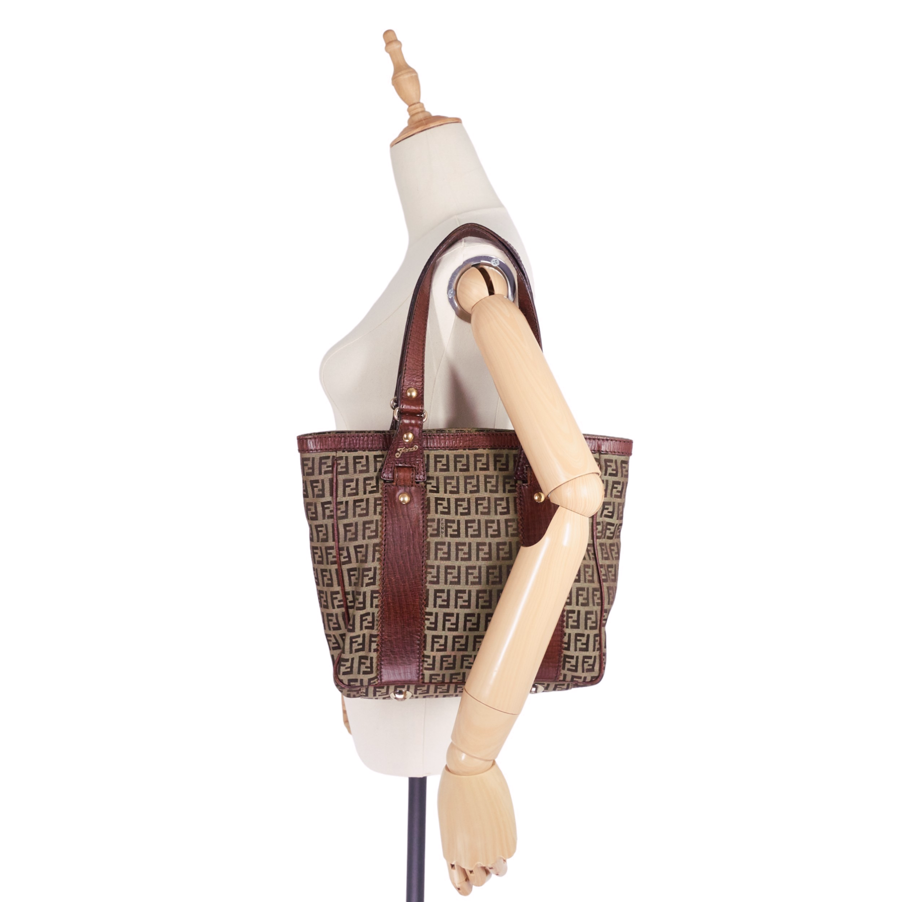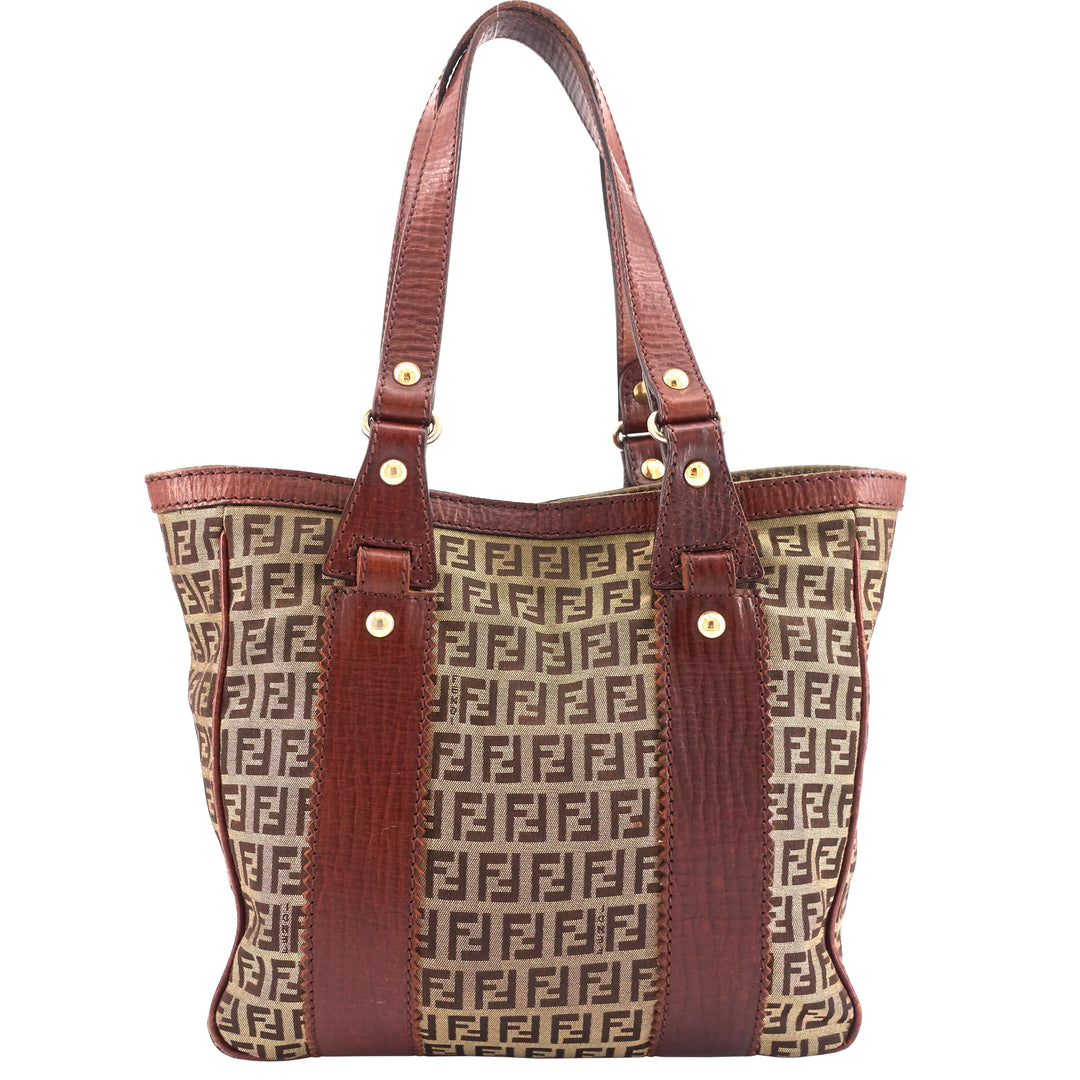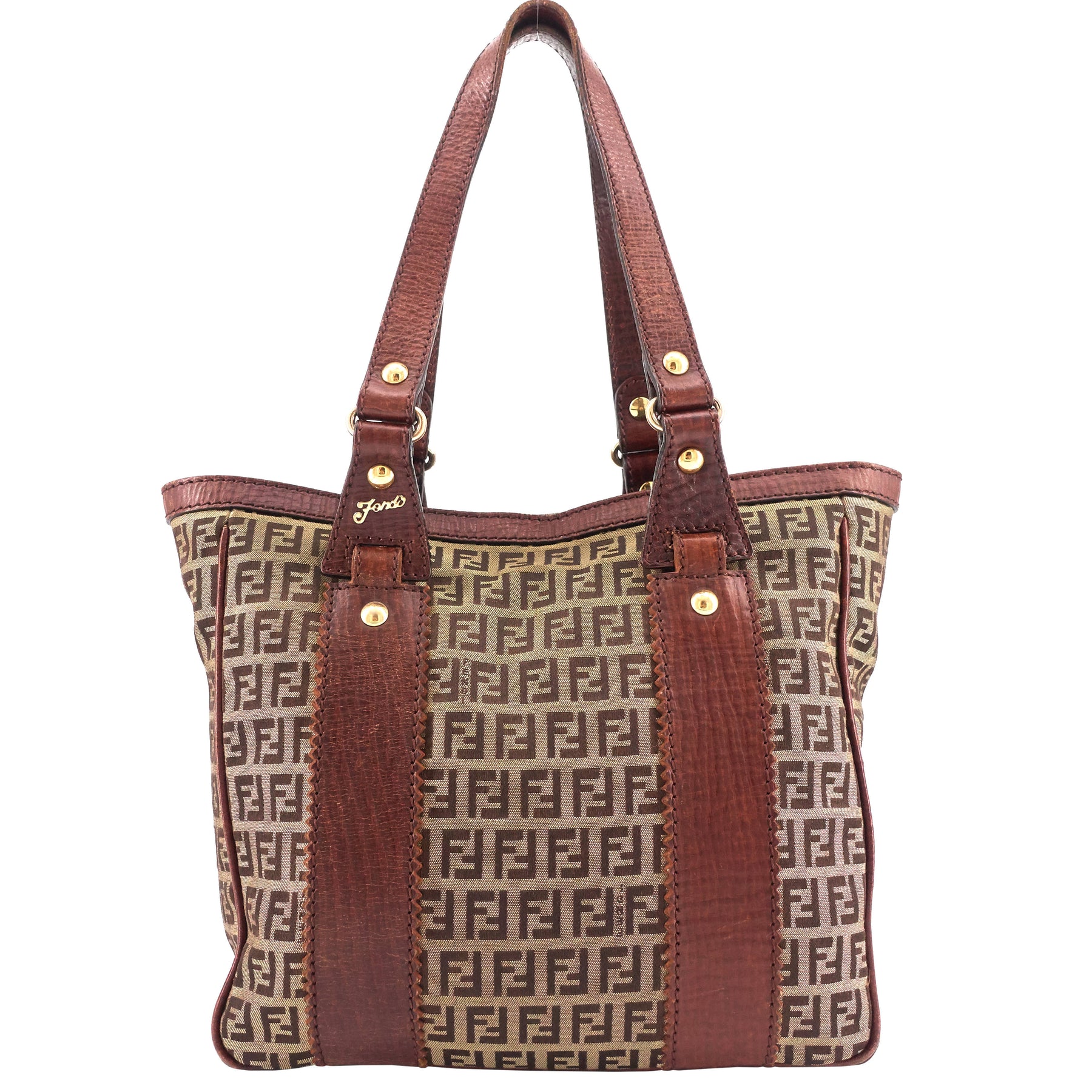FF logos put an iconic mark on an open-top tote bag crafted from canvas and trimmed with leather.