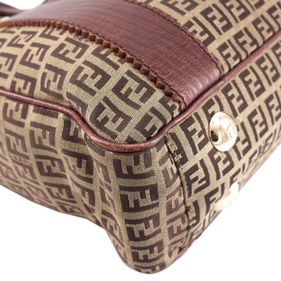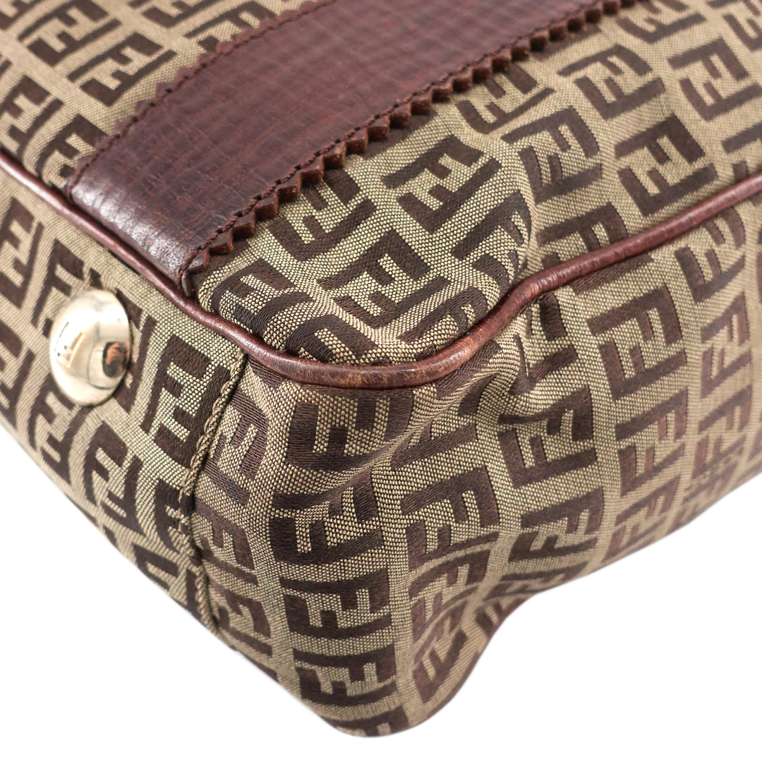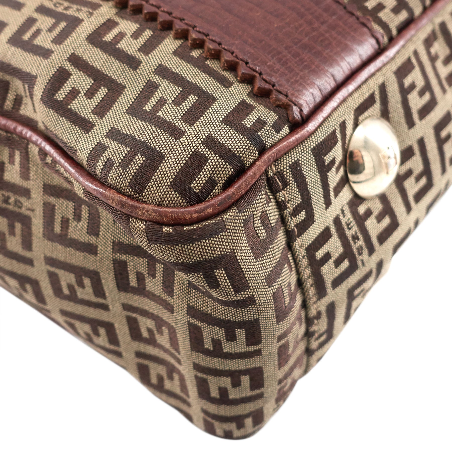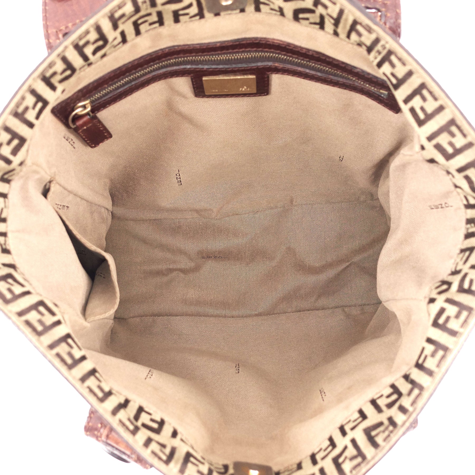 FF logos put an iconic mark on an open-top tote bag crafted from canvas and trimmed with leather.