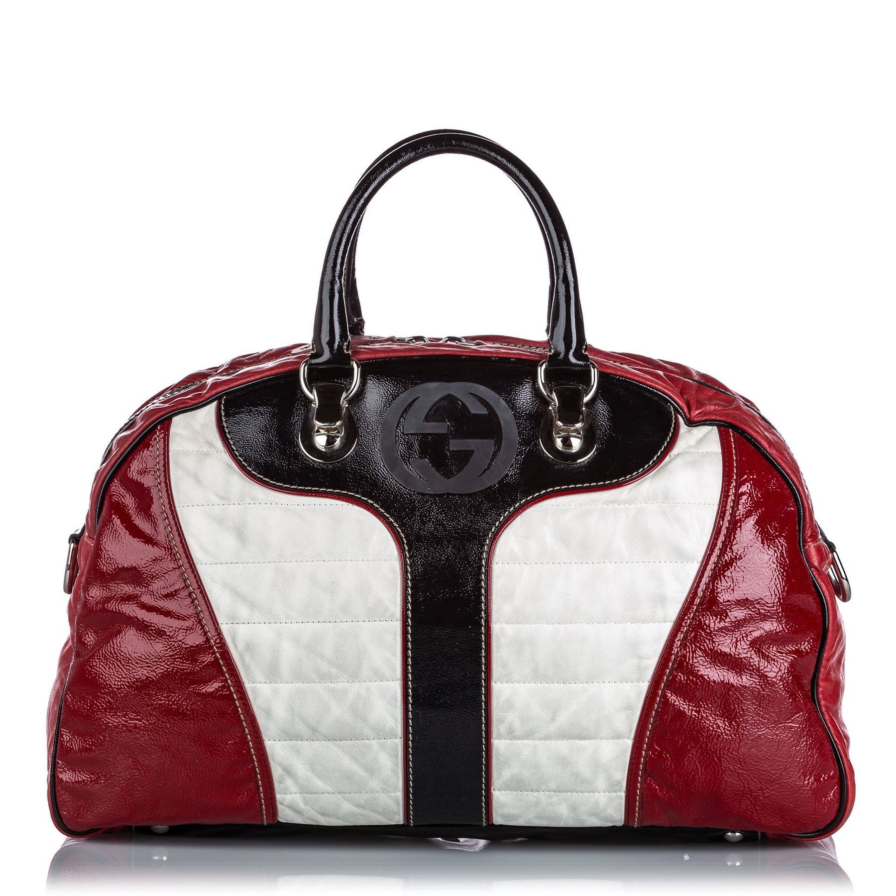 patent leather web weekender bag