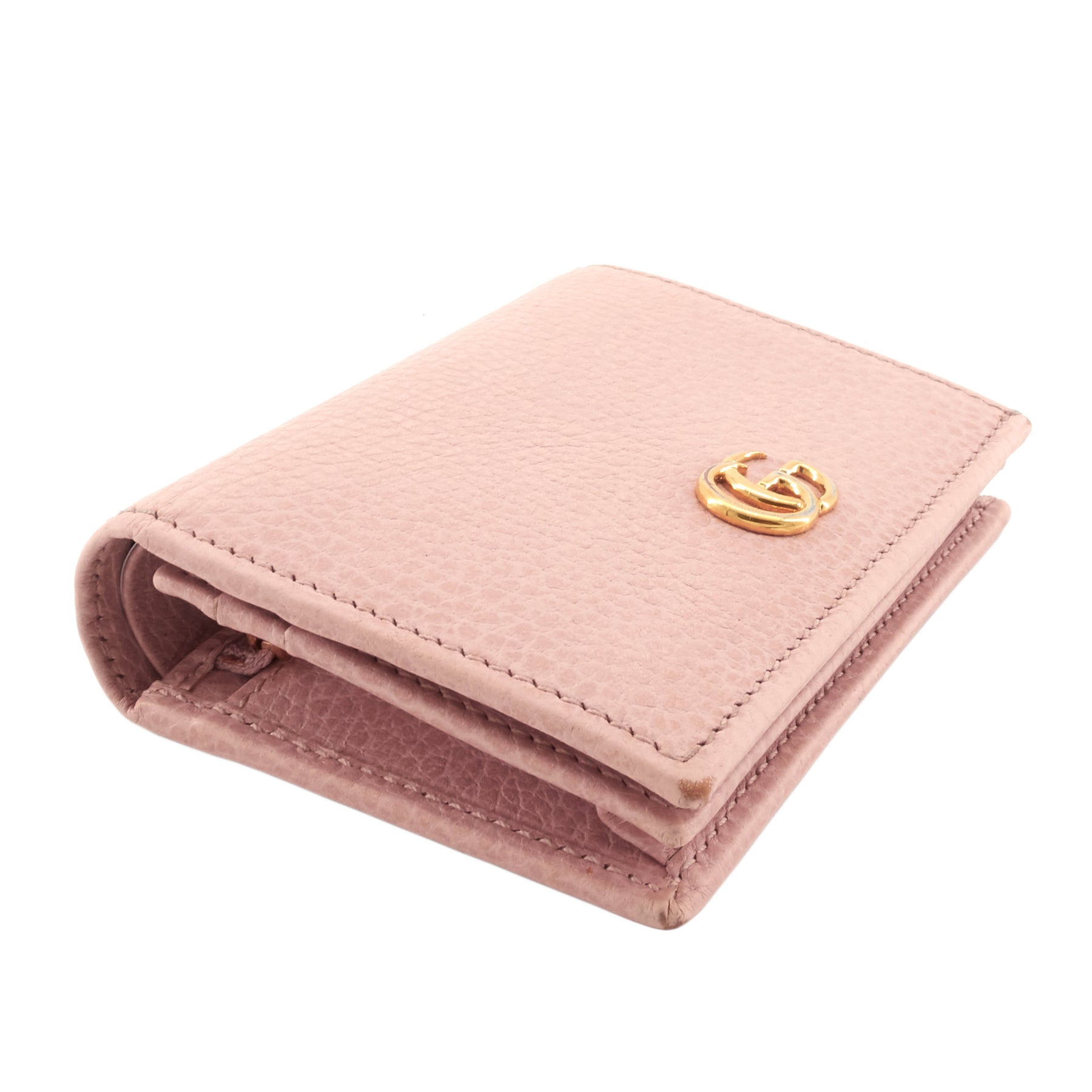 Gucci's double-G logo brands this calfskin-leather wallet featuring a bifold design and room enough for your cards, cash, and spare coins.