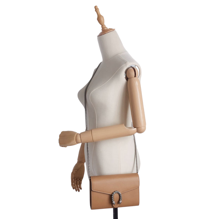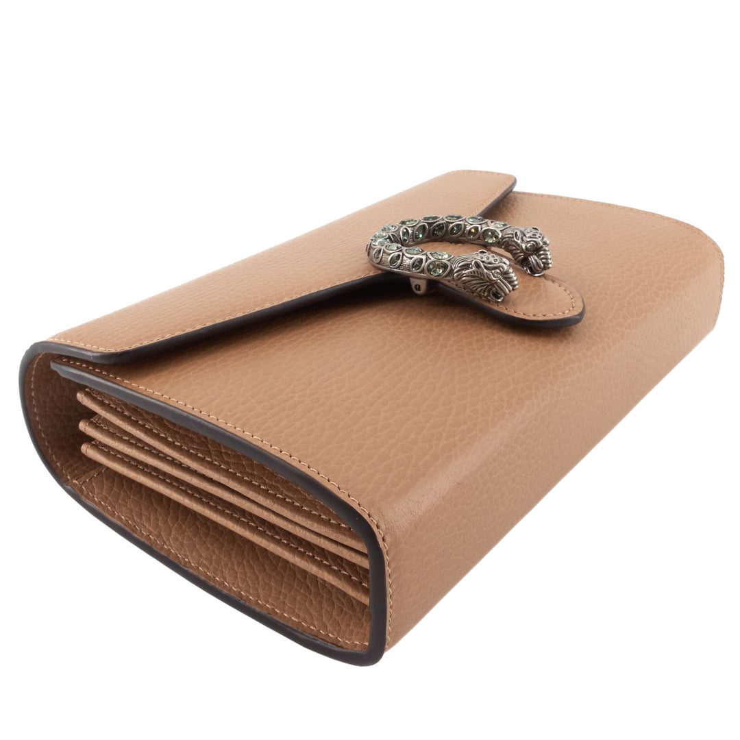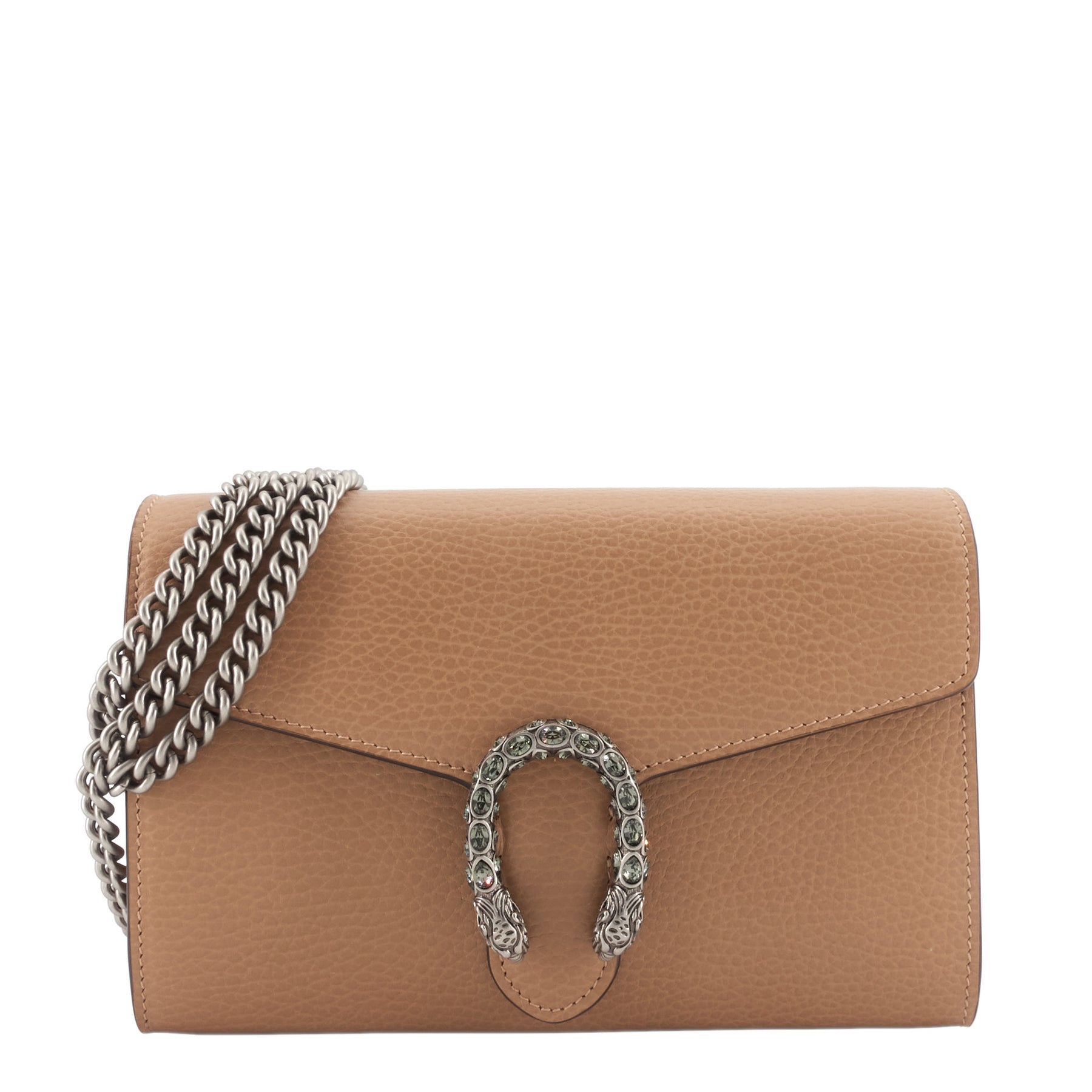The ancient Greek god of wine and revelry lends his name to a sleek shoulder bag made in Italy from textured leather. A double-headed tiger spur with crystal stones enhances the attractive modern look, while the divided interior allows for effortless organization.