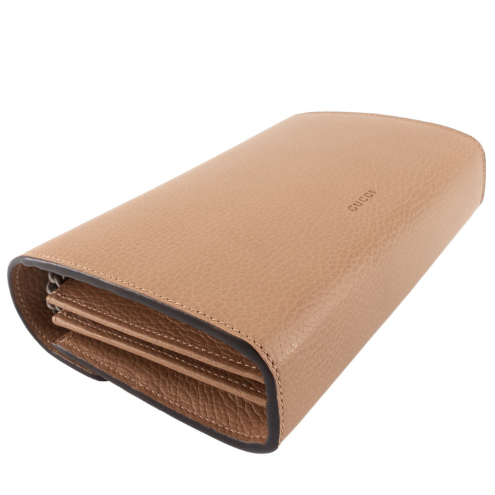 Three compartments; sixteen card slots; two bill pockets; one zipped pocket |
