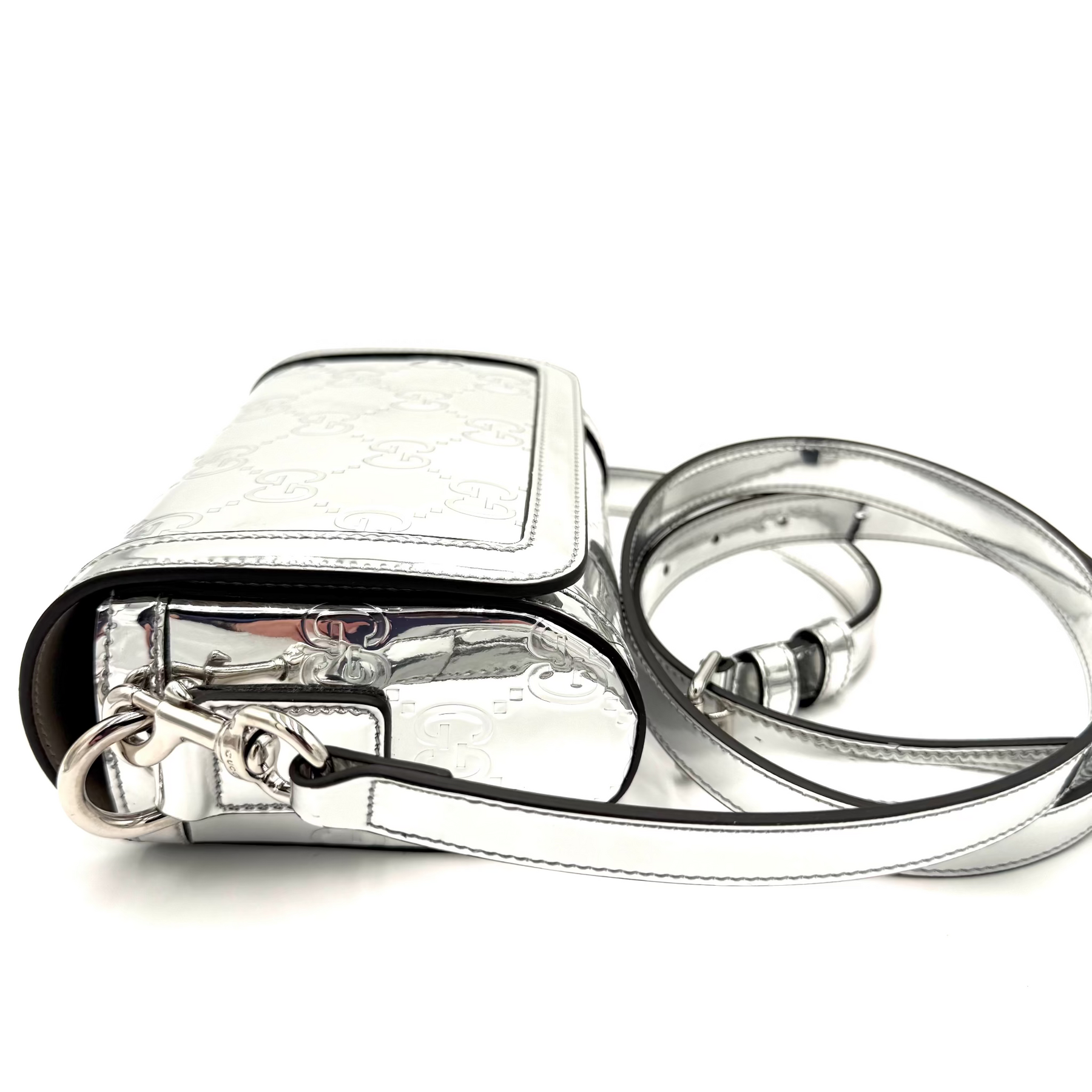| Exterior material | Silver Guccissima patent calfskin leather |