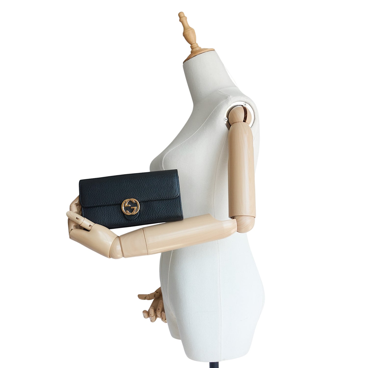 Crafted from richly grained leather with Gucci's interlocking-G monogram at the front, this continental wallet is both functional and elegant, with space for cash, cards, receipts, and more.