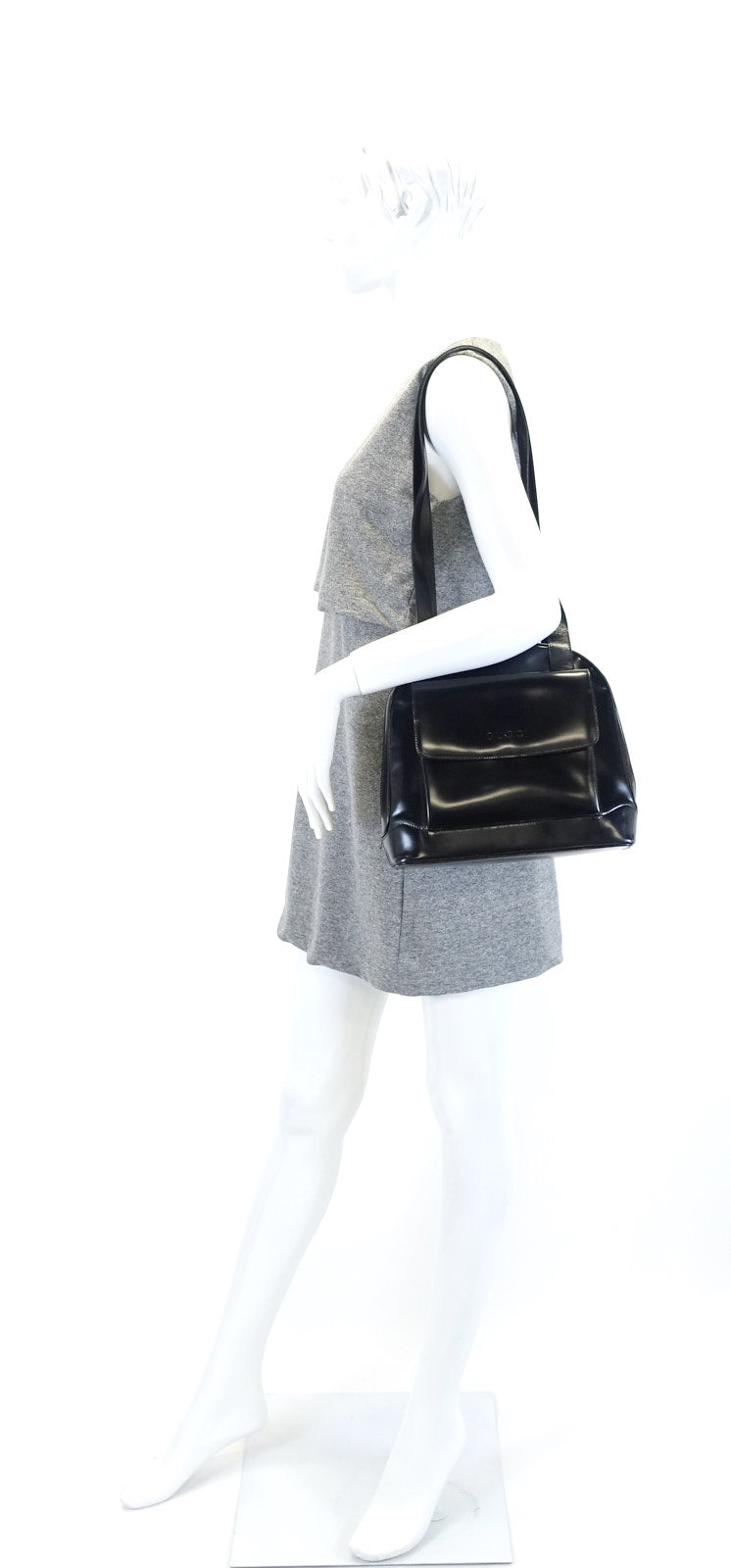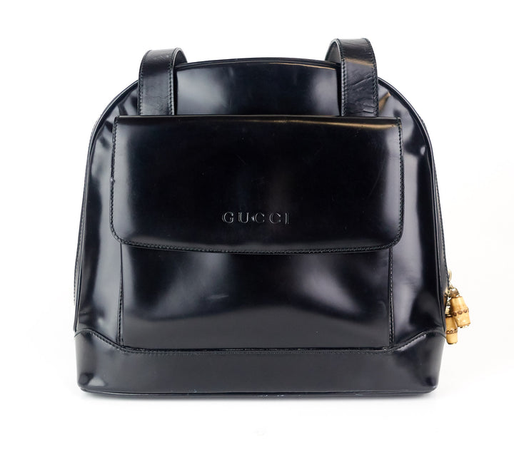 Patent Leather Front Flap Pocket Tote Bag
