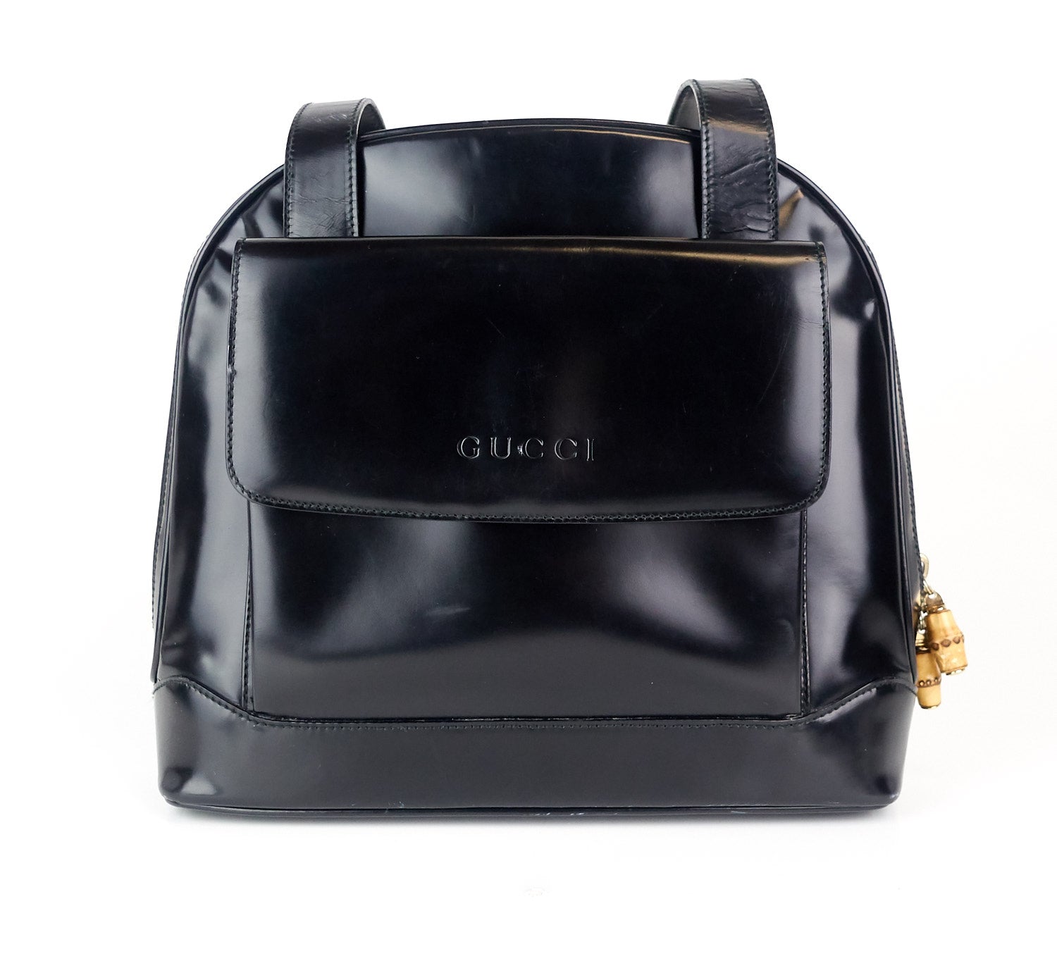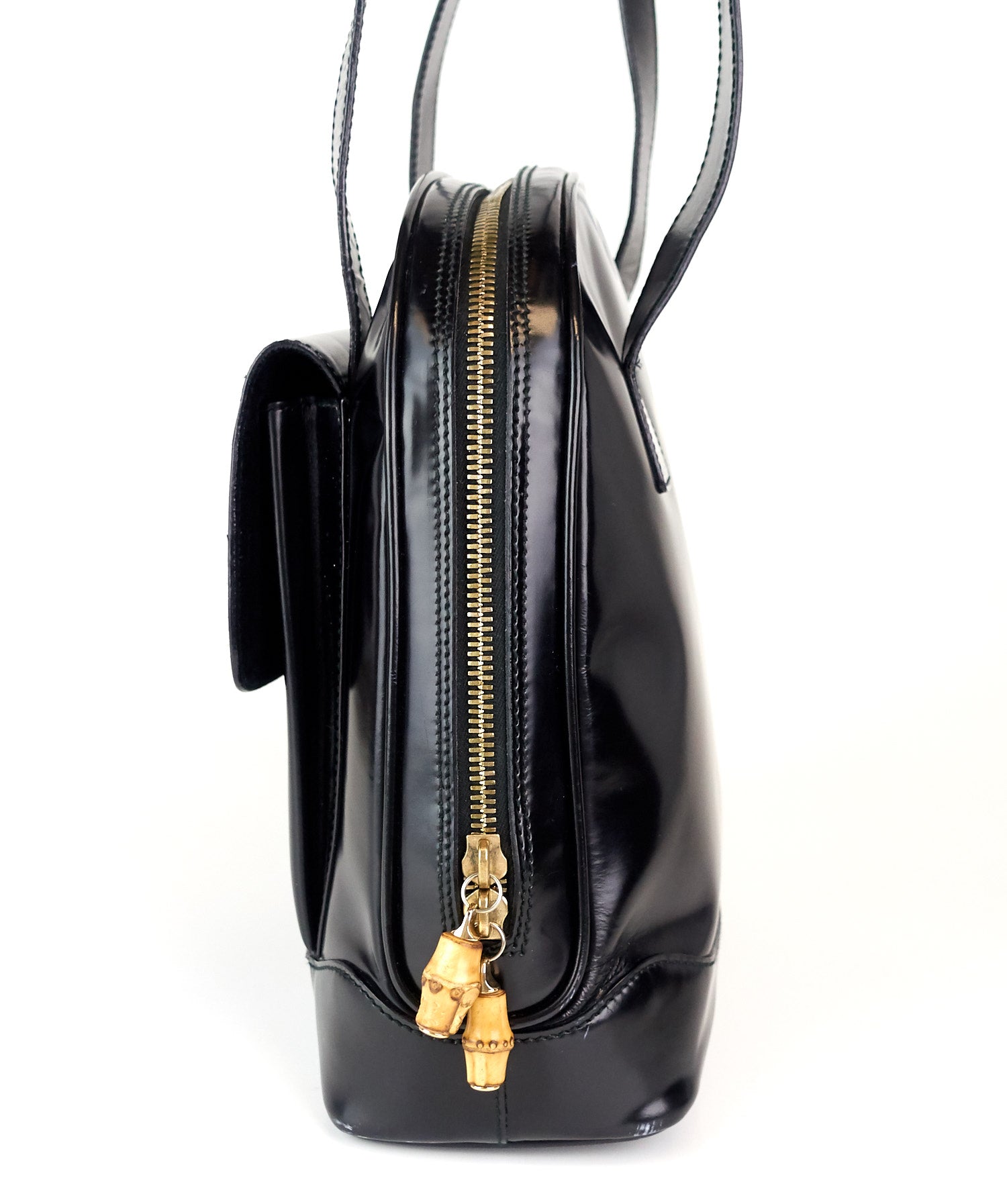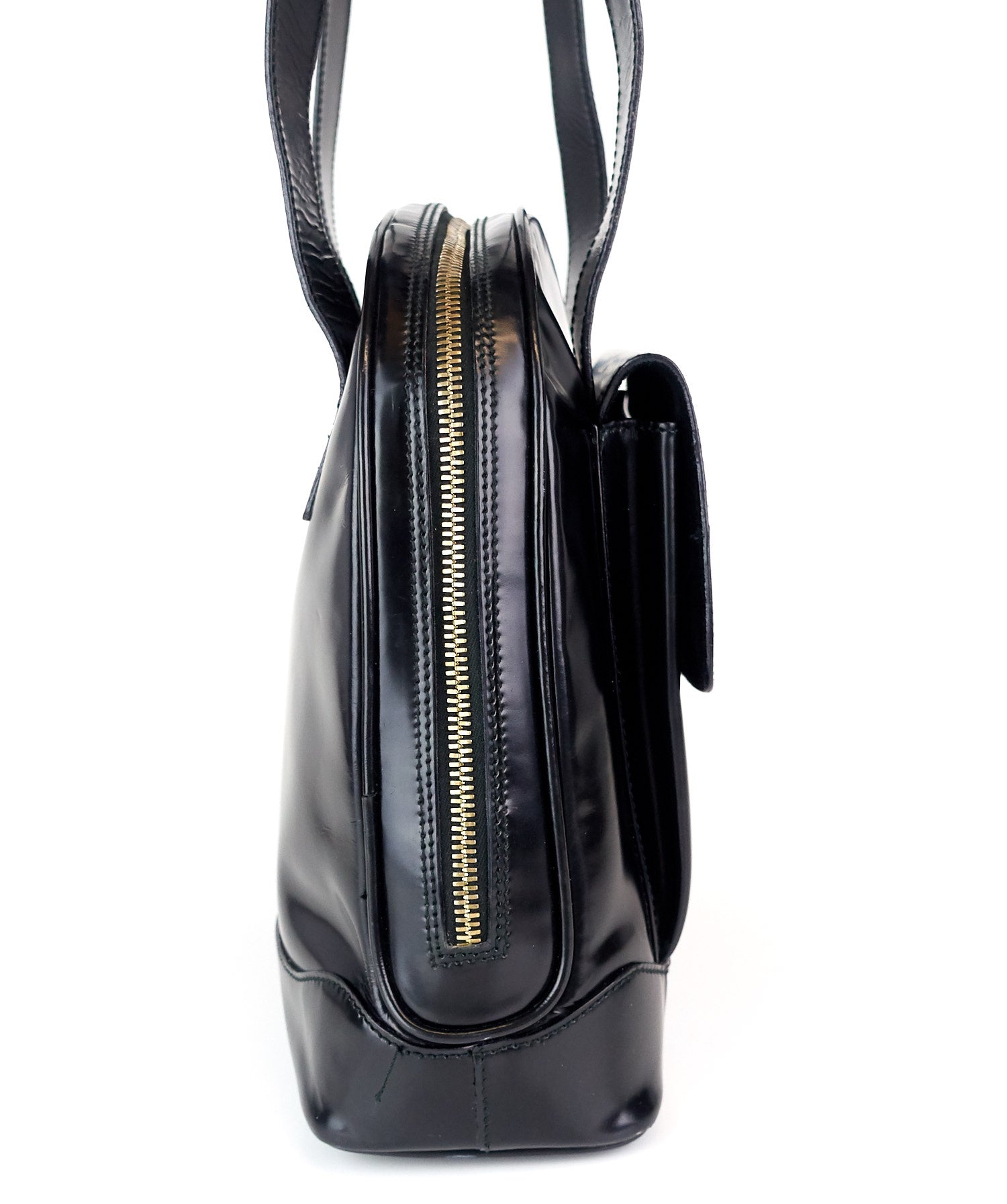 patent leather front flap pocket tote bag