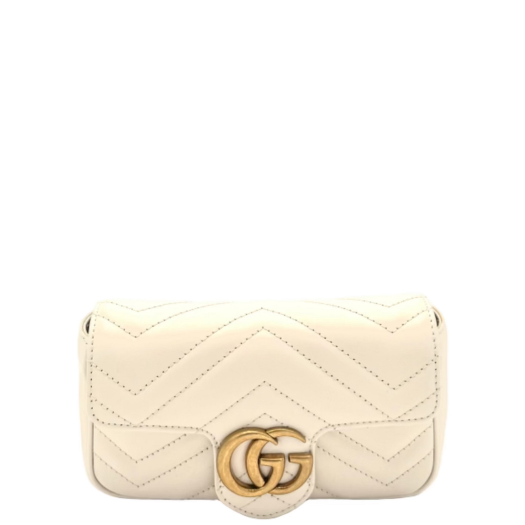 Gucci's iconic double-G logo—an archival design from the '70s—lends retro-chic appeal to a leather crossbody detailed with chevron quilting. The interior fits the smallest essentials and features a microfibre lining with a soft, suede-like finish, while a lengthy strap can be slung across the body for easy, hands-free wear.