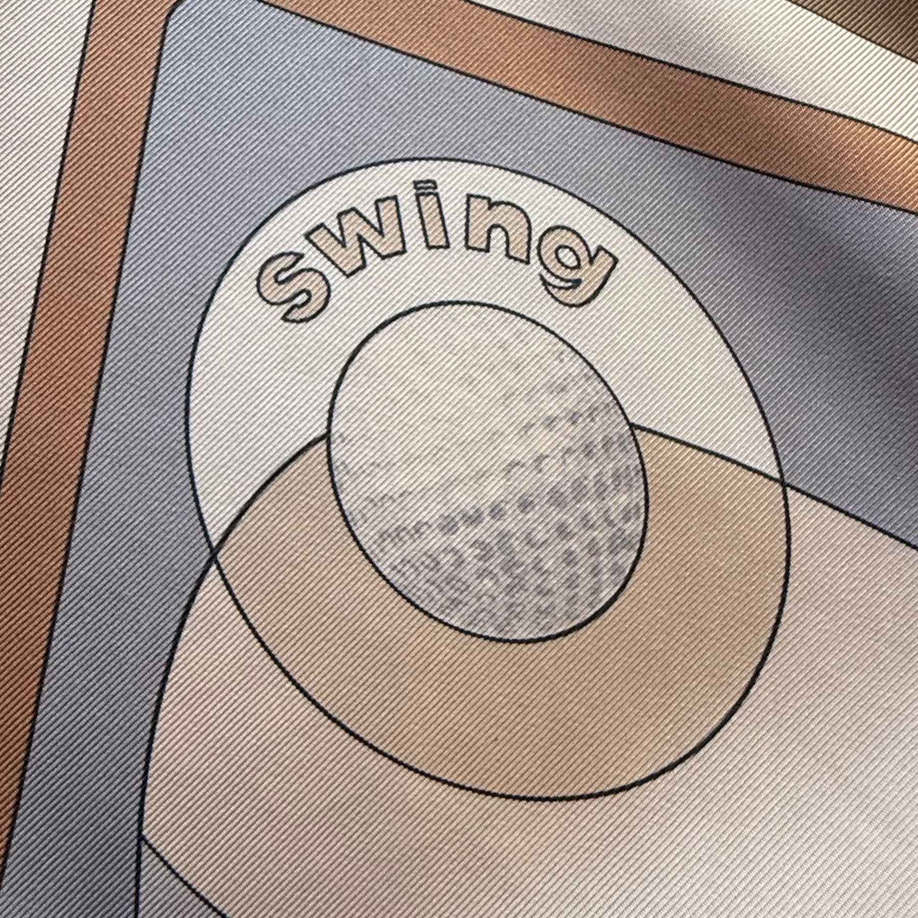 In a refined palette of deep blues, soft tans, and warm browns, Swing evokes a sense of calm sophistication. The muted tones blend seamlessly, offering both versatility and timeless appeal. Printed on Hermès' signature silk twill, the scarf has a smooth handfeel and a lustrous finish, ideal for draping, knotting, or styling as a statement accessory.