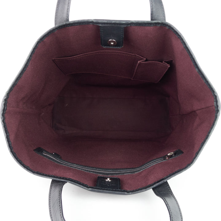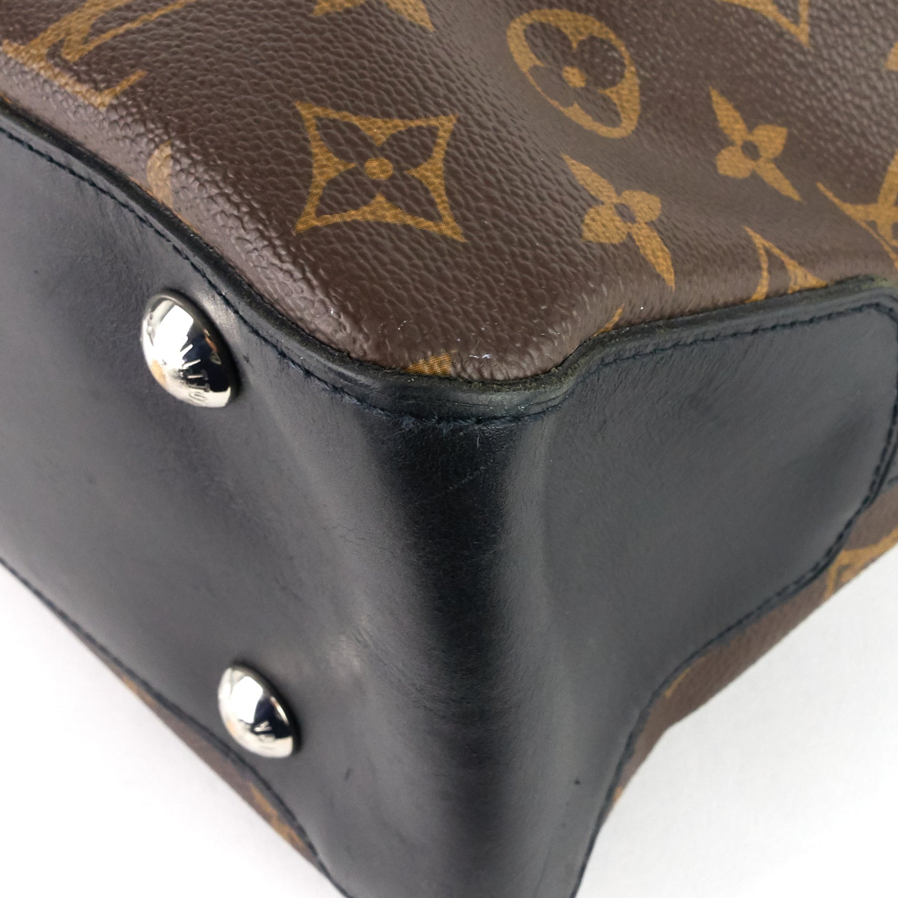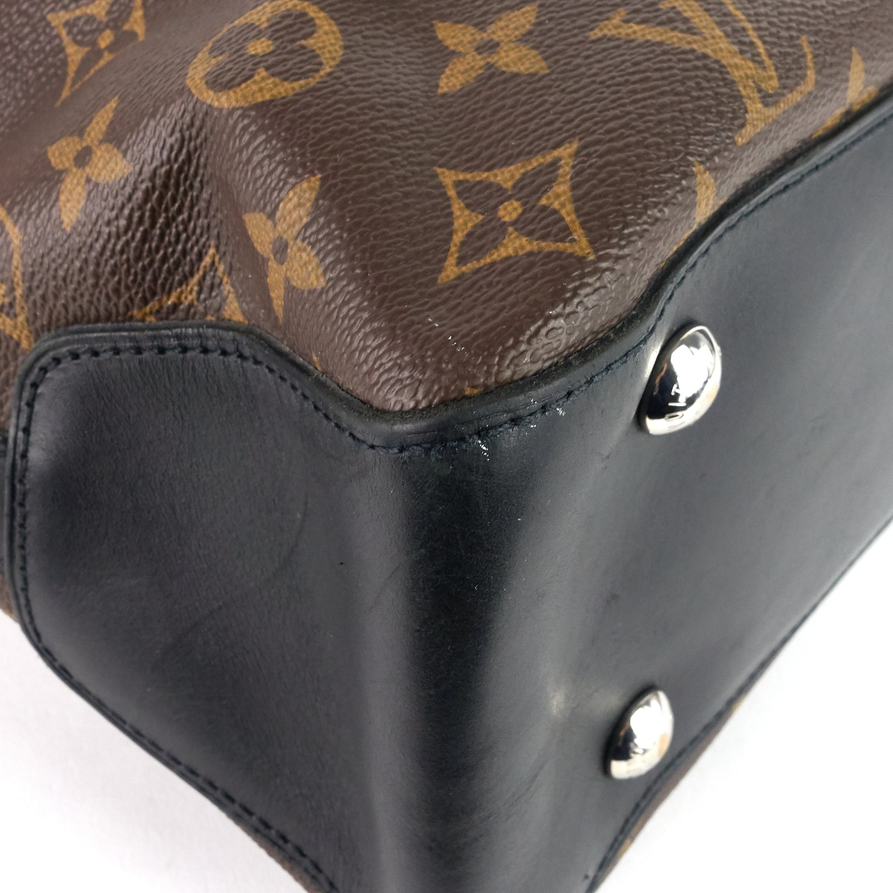 A classically designed tote furnished with plenty of space to store the necessities. It is made from signature monogrammed canvas, trimmed with black Macassar leather, and lined with maroon textile fabric. Easy top handles and an optional crossbody strap offer convenient carrying options.