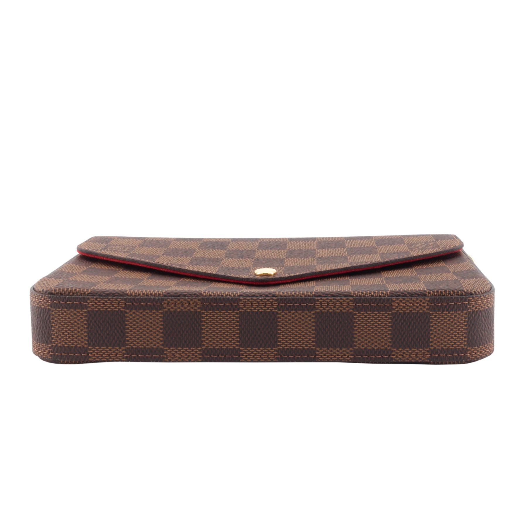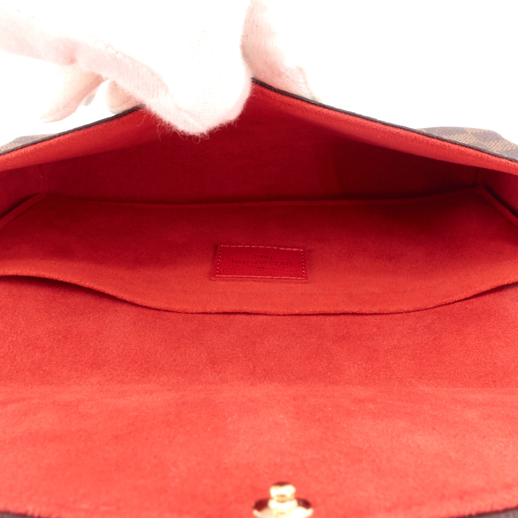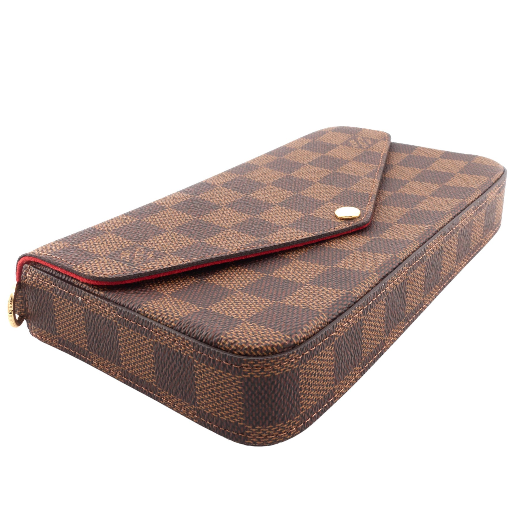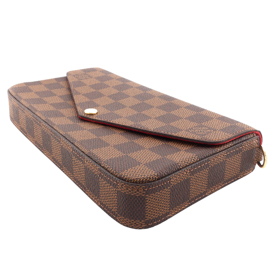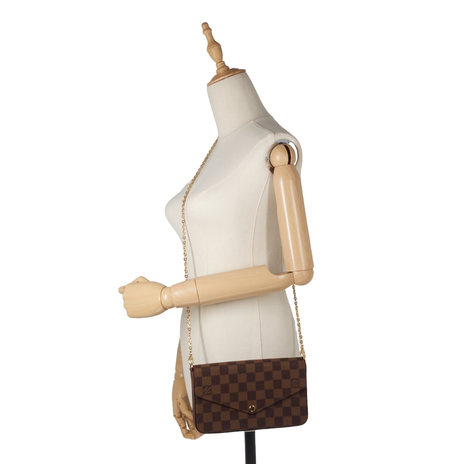 Crafted from signature Damier Ebene coated canvas, the Pochette Félicie embodies stylish simplicity. Two interior pouches can be used as pockets or removed and carried separately as chic clutches. A removable strap lets you carry the style by the hand or over the shoulder.