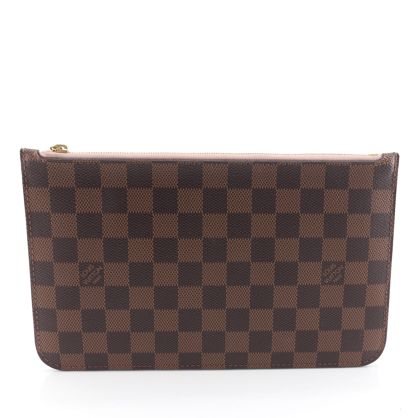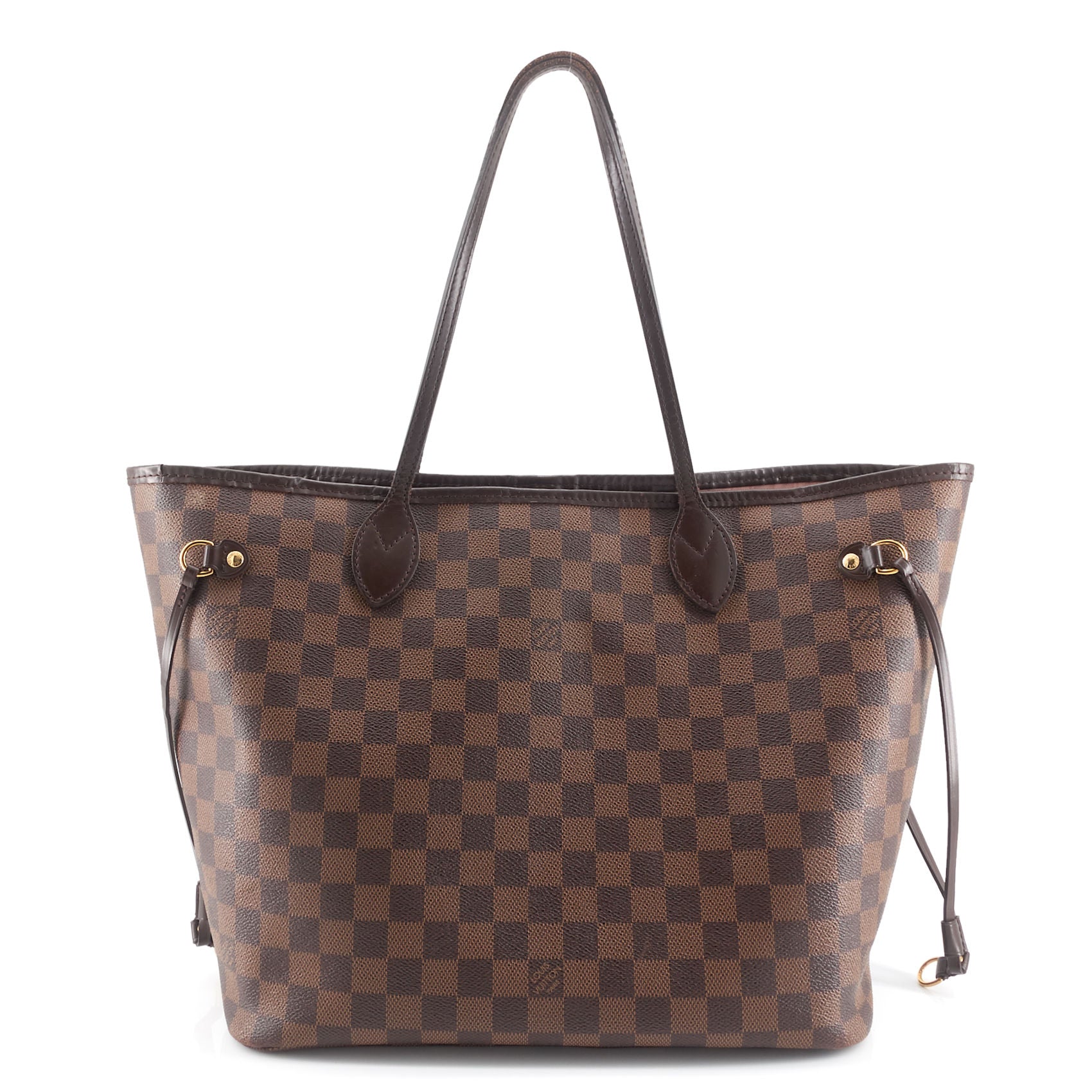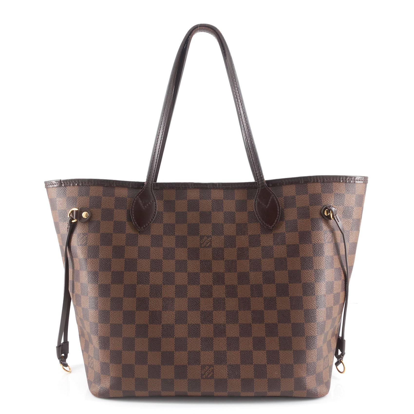 A roomy tote crafted from Damier Ebene coated canvas with gleaming golden hardware and a durable textile lining. As the name suggests, it was designed to "never be full," and will easily accommodate the daily essentials and then some. It can be worn over the shoulder or on the elbow thanks to the long shoulder handles. It comes with a removable pouch that can be carried separately as a chic clutch.
