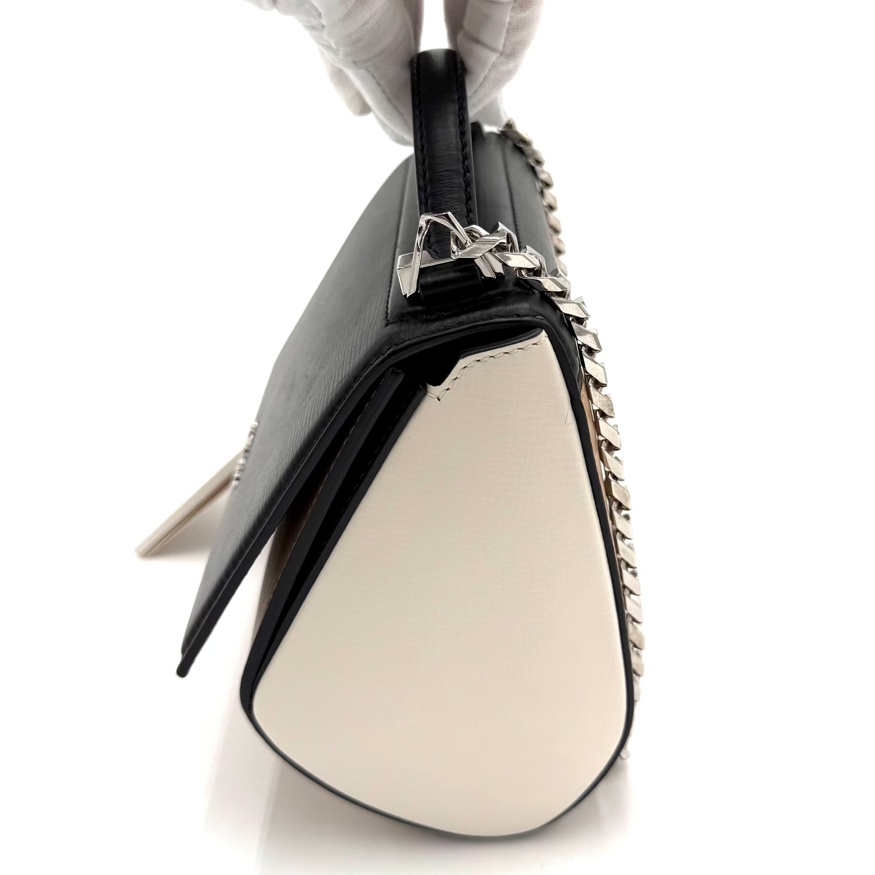 Designed with a softly structured, boxy shape, the Mini Pandora offers surprising functionality despite its compact size. Opens to a spacious interior, ideal for carrying daily essentials. High polish silver tone hardware and crossbody chain strap, it can be worn comfortably over the shoulder or hands-free.