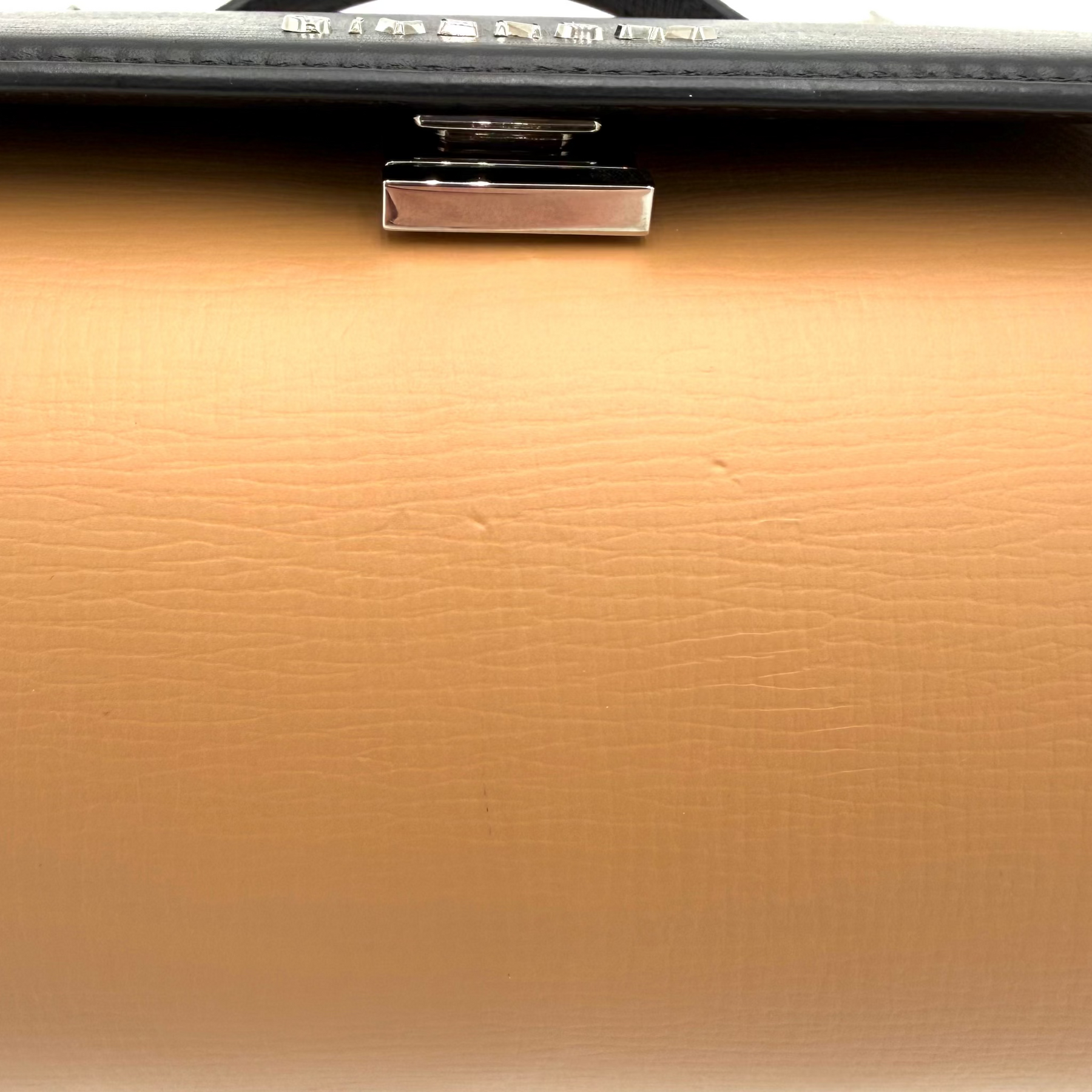 Overall: New with tags. Appears never carried. Two small indents/blemishes in the tan leather on the front.