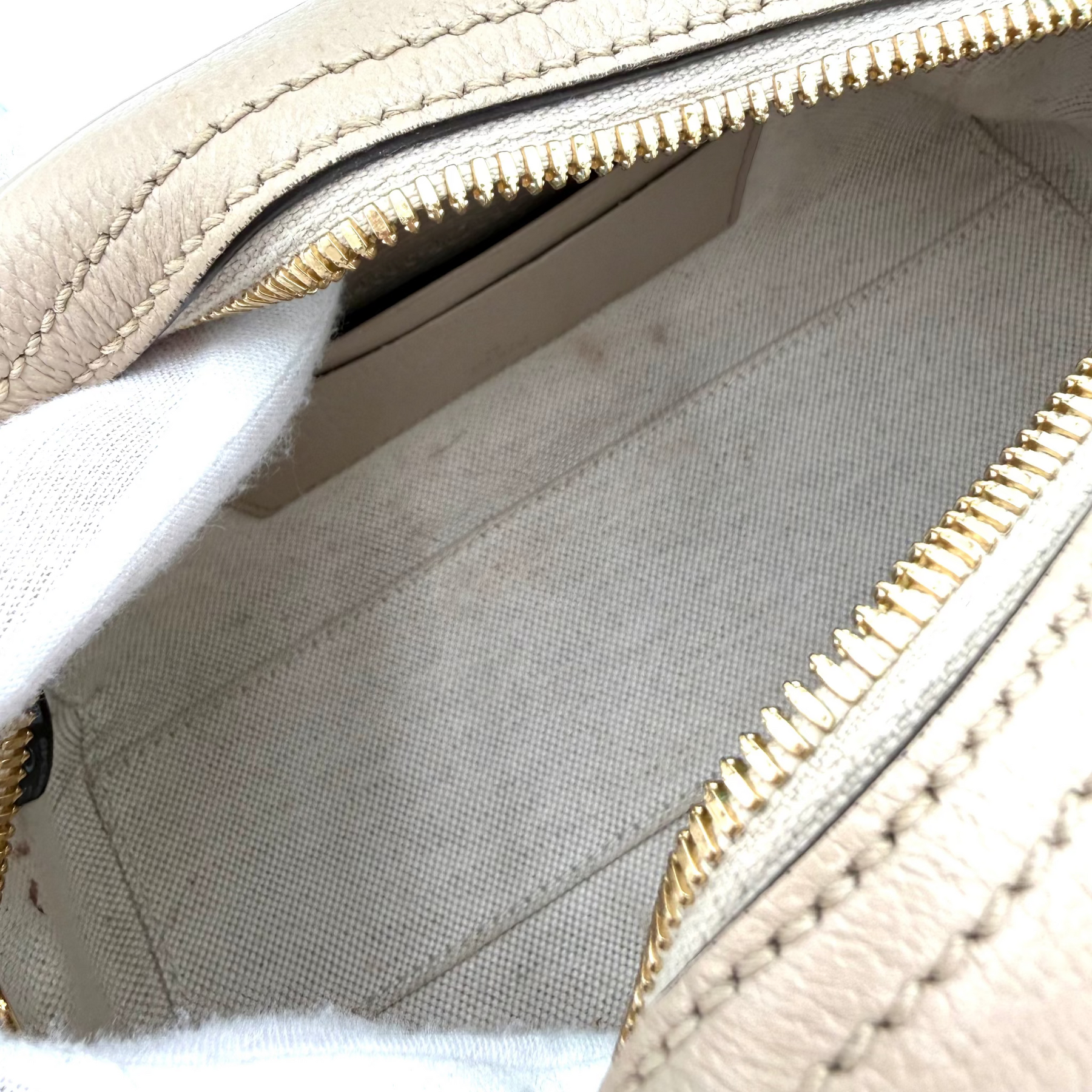 Overall: Some small marks on the interior fabric and cavas strap. Handles, leather and monogram canvas are clean and in excellent shape. Some minor/faint discolouration on some of the hardware.