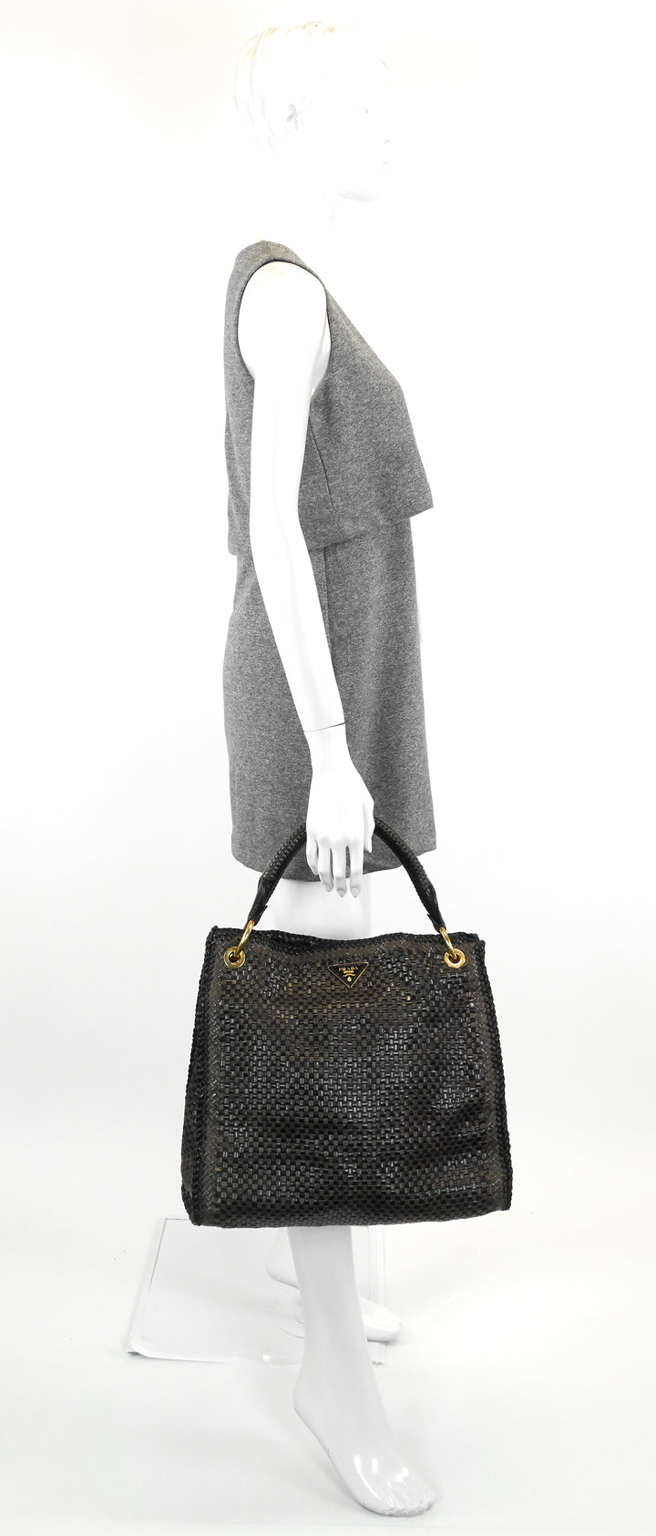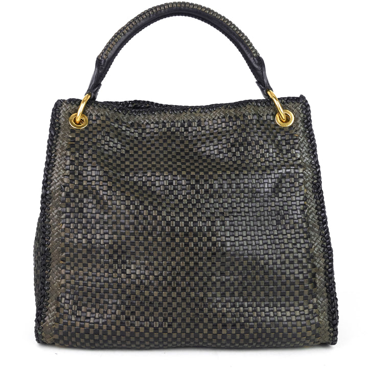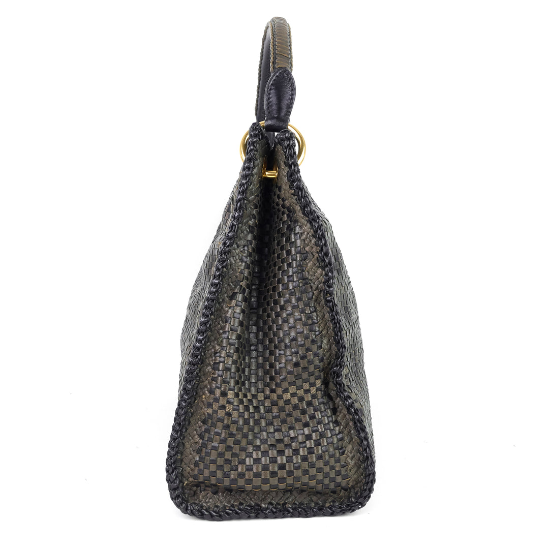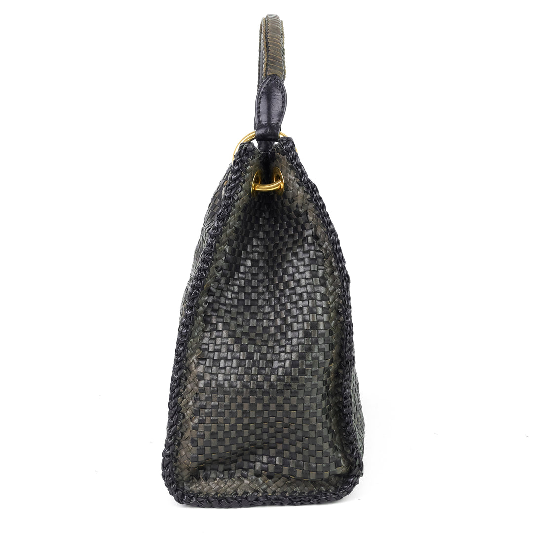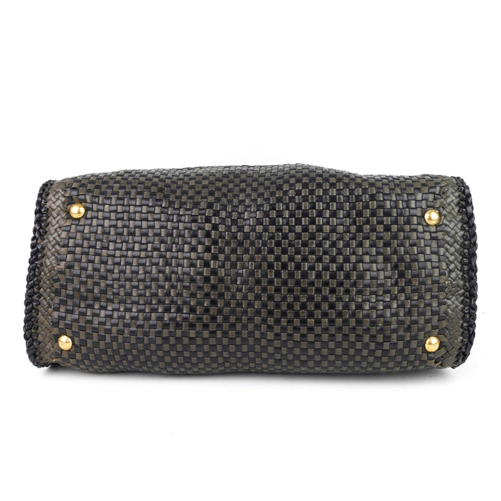 Madras Woven Leather Shoulder Bag