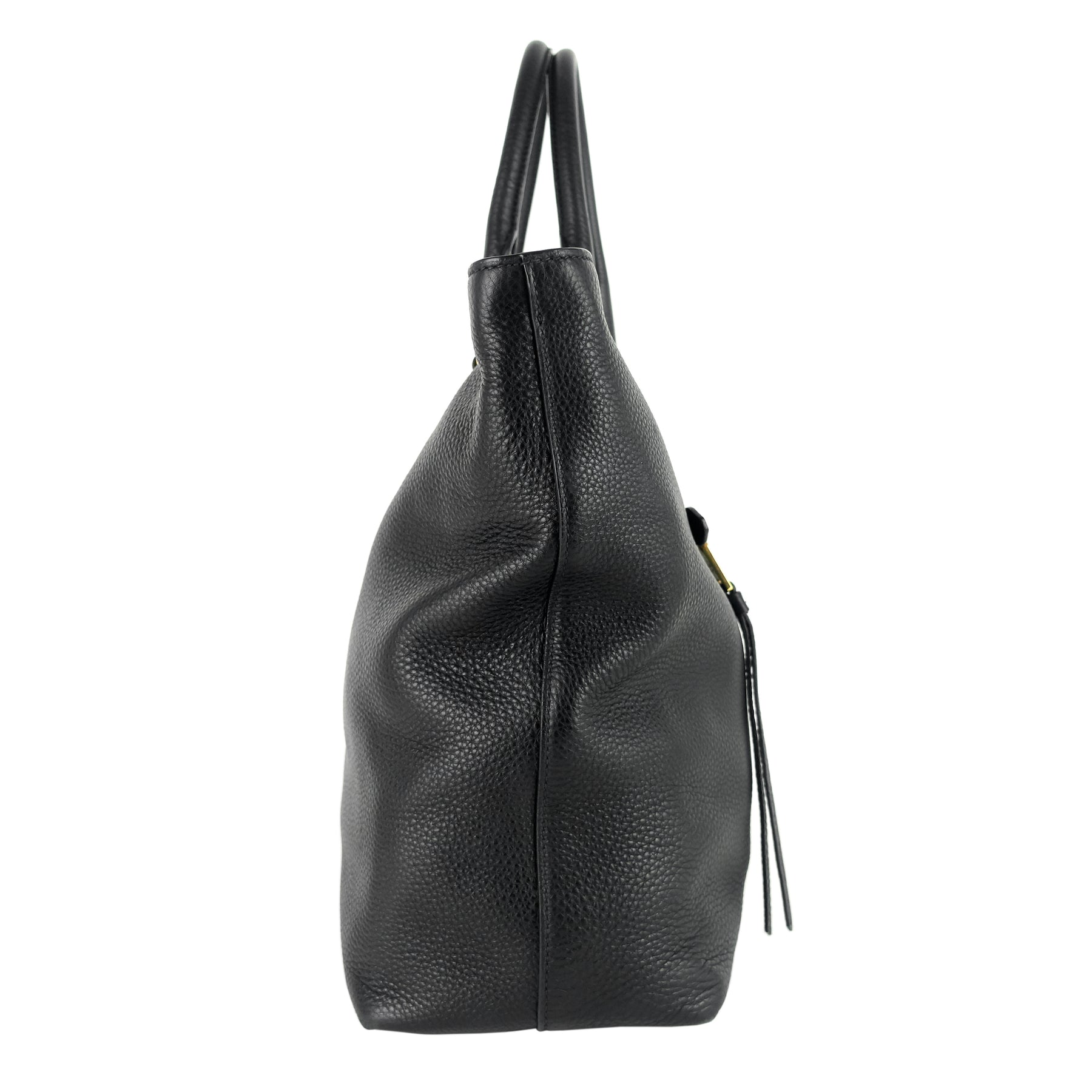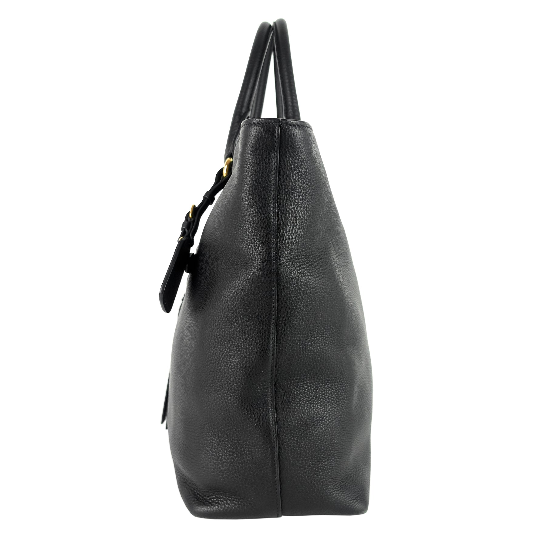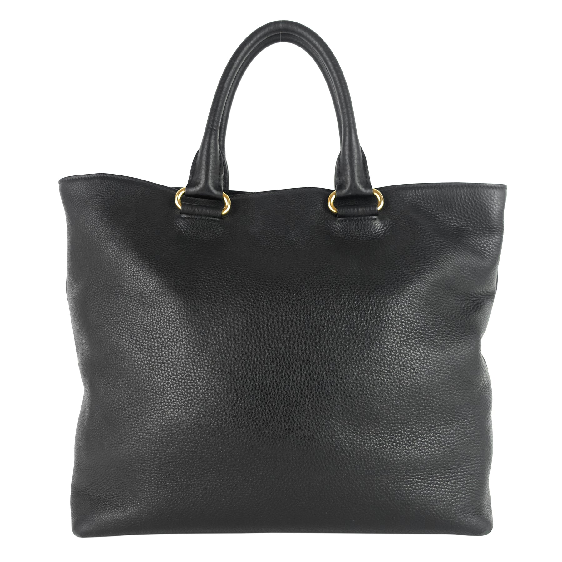 A classically designed, Italian-made tote bag in rich Vitello Daino leather features a spacious interior lined with logo-jacquard and an optional strap for easy shoulder carry.