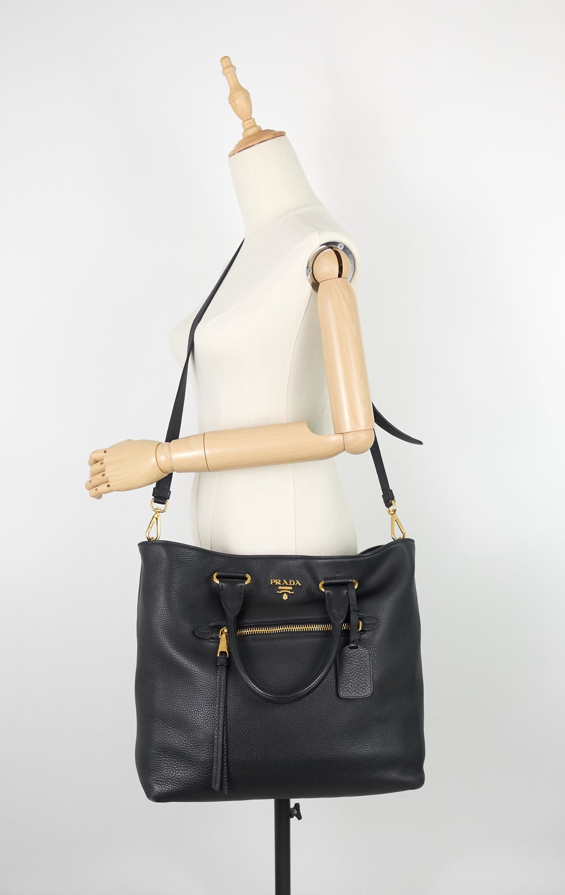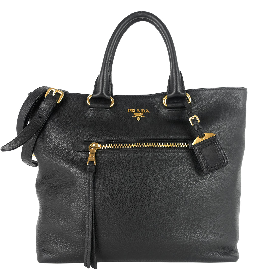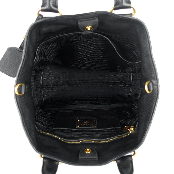 A classically designed, Italian-made tote bag in rich Vitello Daino leather features a spacious interior lined with logo-jacquard and an optional strap for easy shoulder carry.